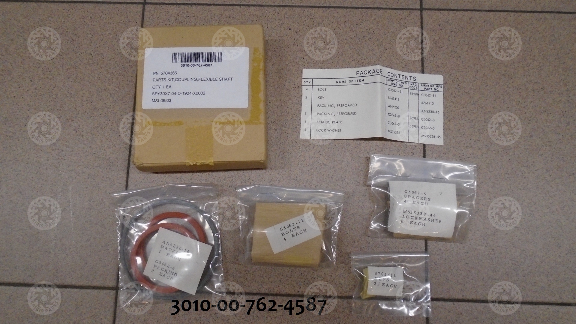 PARTS KIT,COUPLING,FLEXIBLE SHAF NSN: 2910-00-762-4587